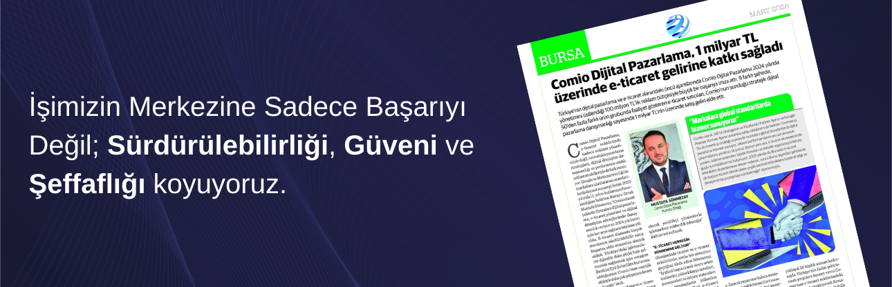 Comio Dijital Pazarlama A.Ş. olarak, işimizin merkezine sadece başarıyı değil; sürdürülebilirliği, güveni ve şeffaflığı koyuyoruz.
