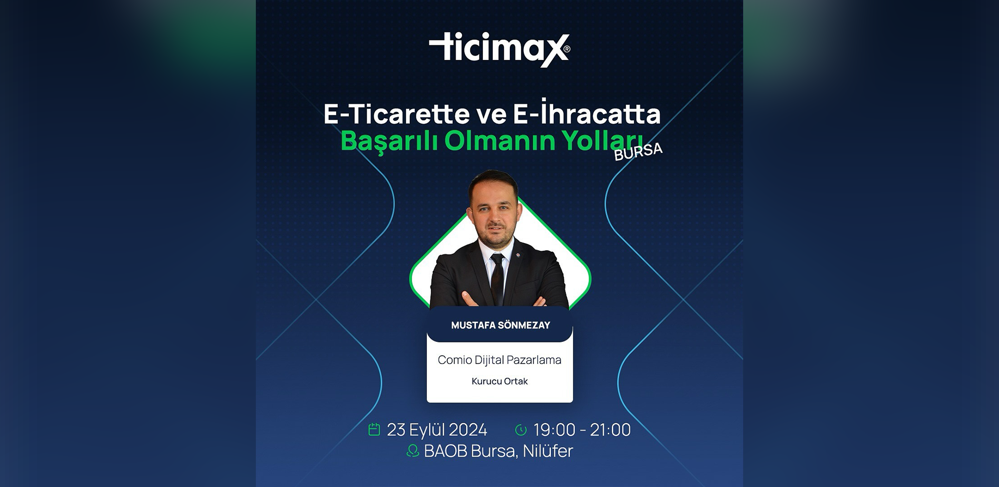 Kurucu ortağımız Sayın Mustafa Sönmezay’ın da katılımıyla, Murat Erdör’ün moderatörlüğünde 23 Eylül akşamı Bursa BAOB’ta gerçekleşti. Etkinlikte ‘’E-Ticaret ve E-İhracatta Başarılı Olmanın Yolları’’ konusu ele alındı. Değerli markalar, kıymetli konuşmacılar ve katılımcılarla zenginleşen bu etkinliğe gösterilen yoğun ilgi için teşekkür ederiz.